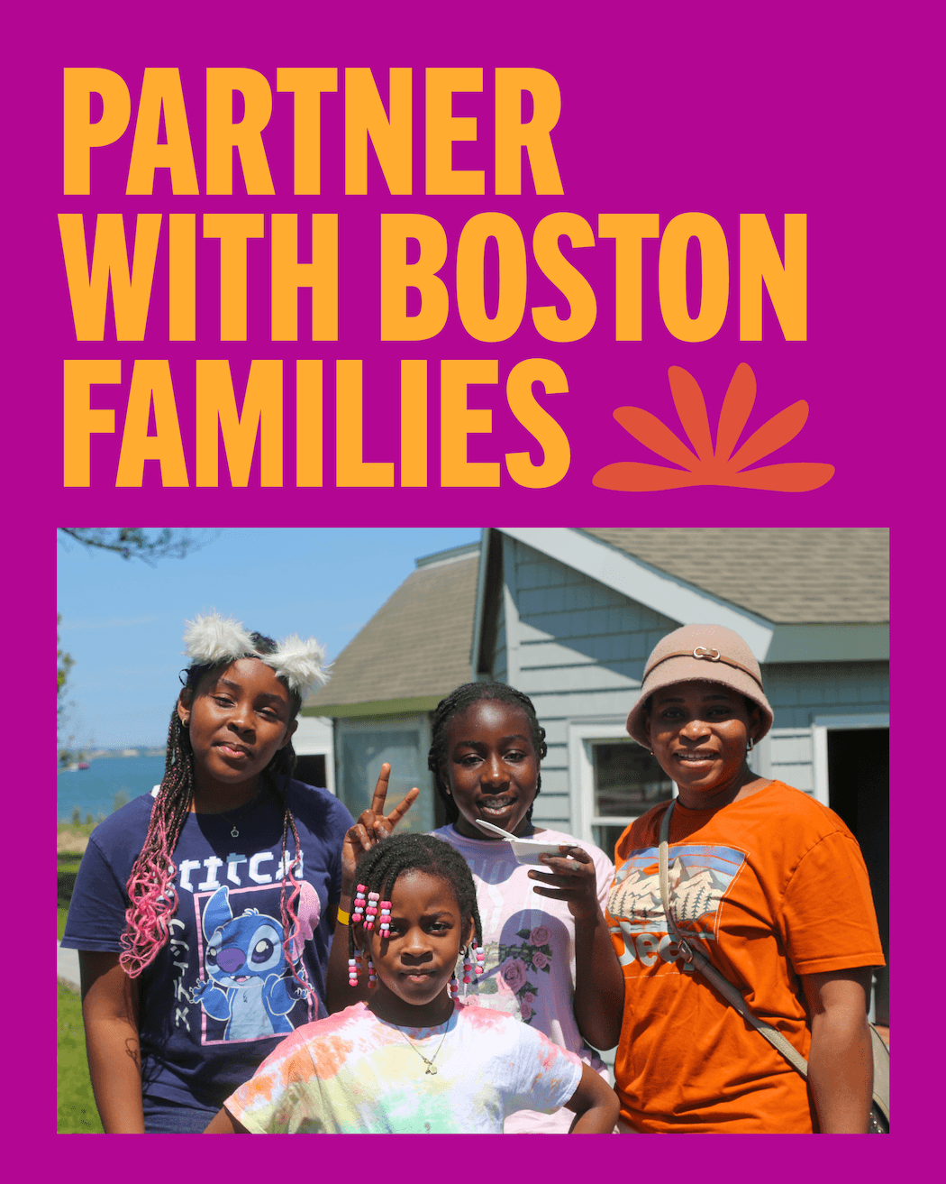 Make your secure, tax-deductible donation here to continue growing this partnership with Boston youth and families, or find other ways to give here.